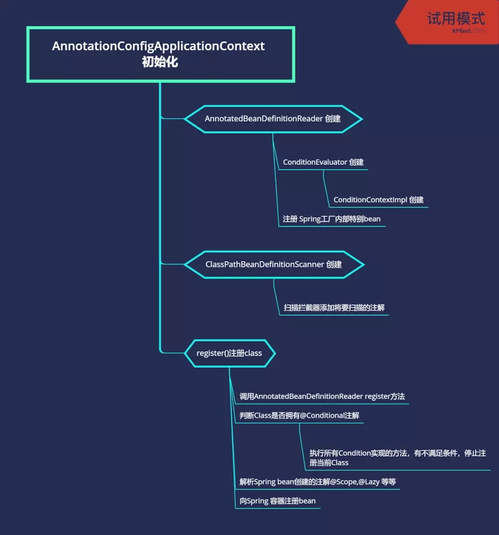 这个方法就是将注册的Bean,解析Class上的注解,初始化注解数据,做相应处理,转化成BeanDefinition ,放入Spring 容器中保存起来。