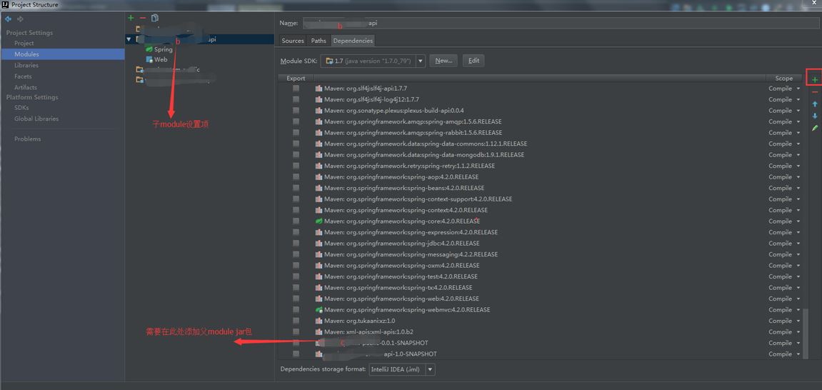 这有这两个地方的依赖jar包都添加了,整个多module之间的依赖配置才完成了。