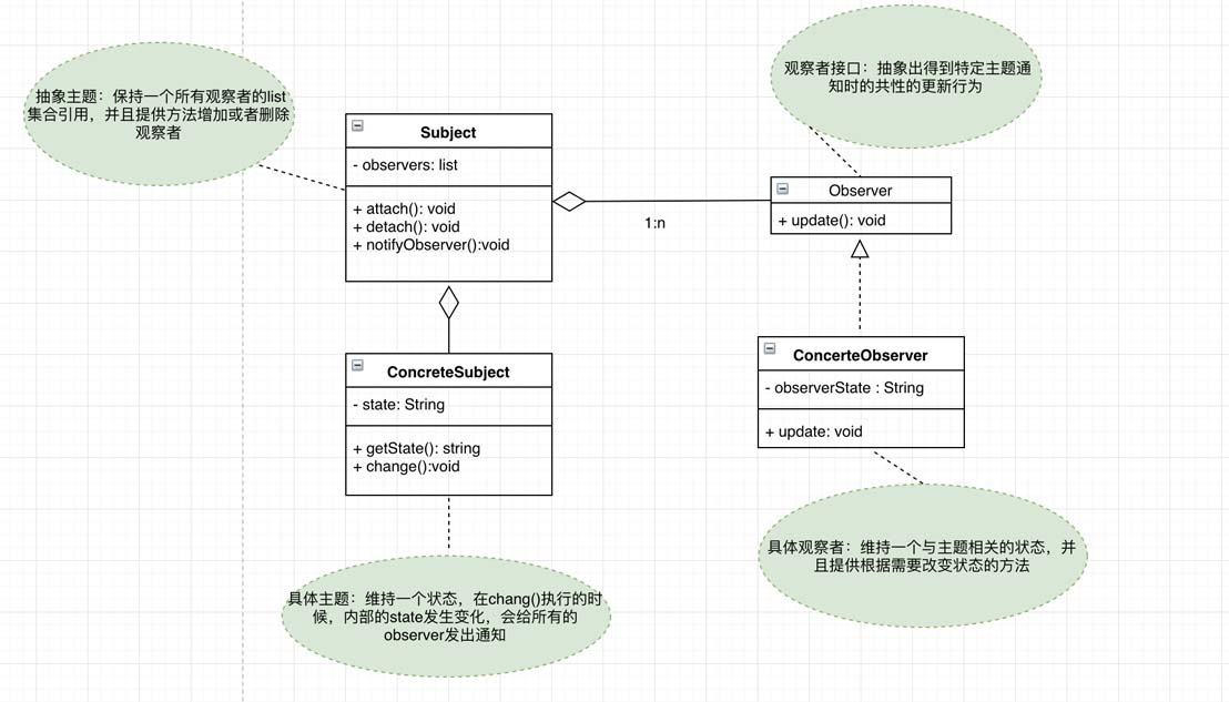 Spring的事件监听(也称事件驱动)是观察者模式的一种实现,比较常见的有发布-订阅模型。通常我们利用消息队列来实现不同系统之间的解耦,如用户注册完成后,可以向消息队列发布一条消息,然后订阅了此topic的子系统(如邮件服务,积分服务)收到发布的消息之后,就会做相应的处理。这样做的好处是避免了在注册服务里耦合其他服务的代码,并且,执行子系统的业务将会异步执行,互不影响。下图是一个经典的观察者模式的结构。