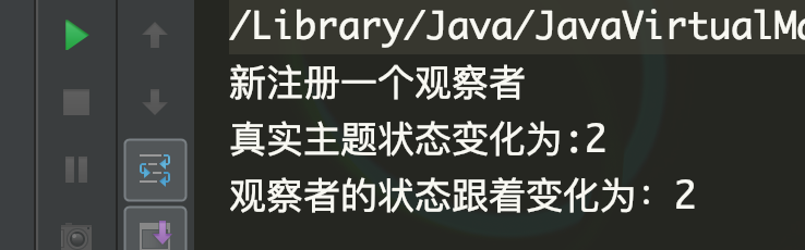 结果:在执行了main方法之后,我们可以看到控制台输出结果,表明,真实观察者的状态是会根据真实主题的状态变化而变化的: