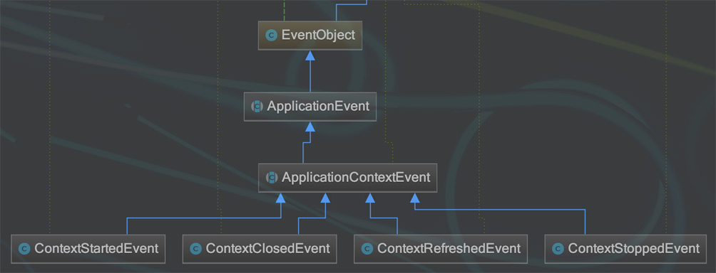 spring容器内部对ApplicationEvent有着下面几个实现,通过名字可以很清楚事件所描述的行为。