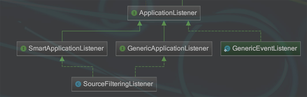 实现ApplicationListener这个接口,重写onApplicationEvent()方法,来处理监听到的ApplicationEvent,这里可以监听特定类型的事件。