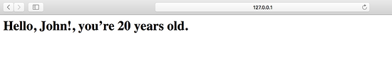 Hello, ''' + user['username'] + '''!, you're ''' + user['age'] + ''' years old.