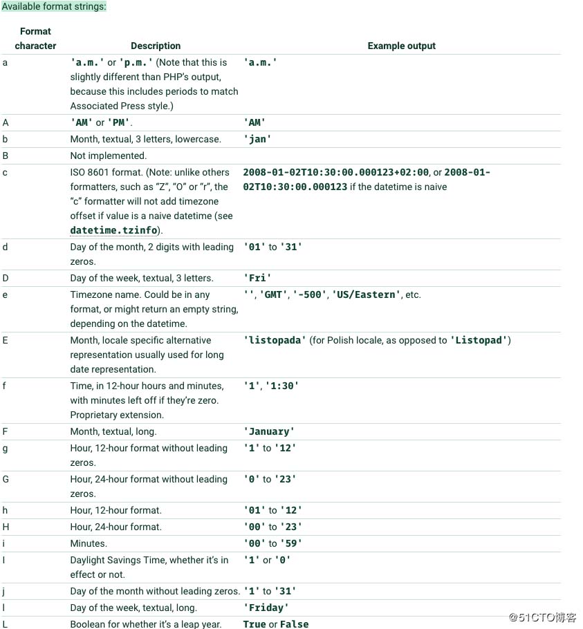 这里可用的格式化字符串的其他写法参见Django官方文档: