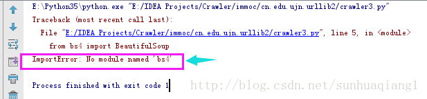 1. 在python2.x下安装的BeautifulSoup在python3.x下运行会报这种错,可用pip3 install Beautifulsoup4 .