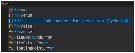 但是我们不满足于此,我们要实现自己的style。例如Snippets,比如我们输入for,在提示框中选择对应的snippet: